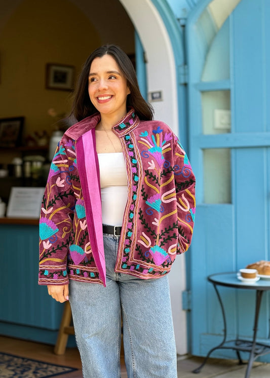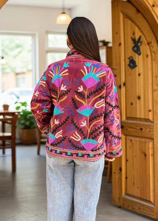 Wine with Colours Suzani Velvet Embroidered Jacket