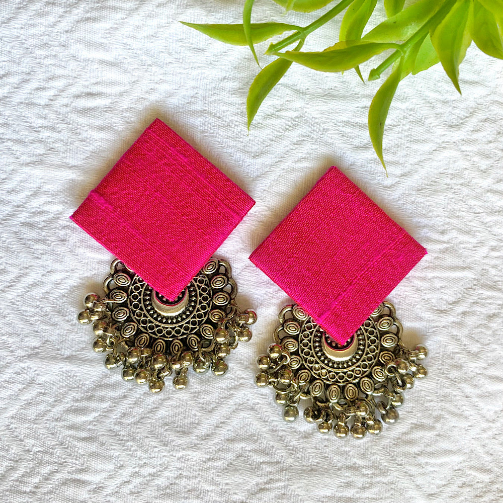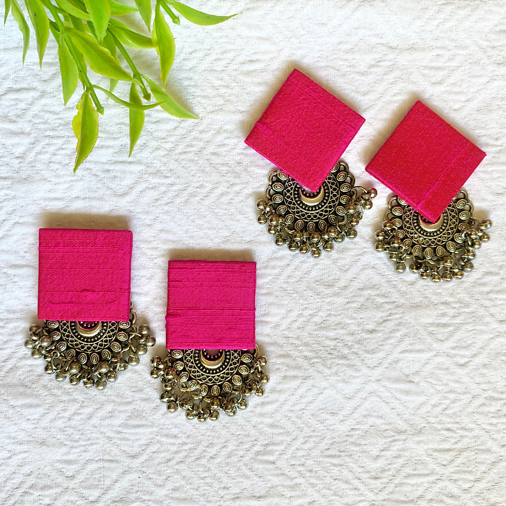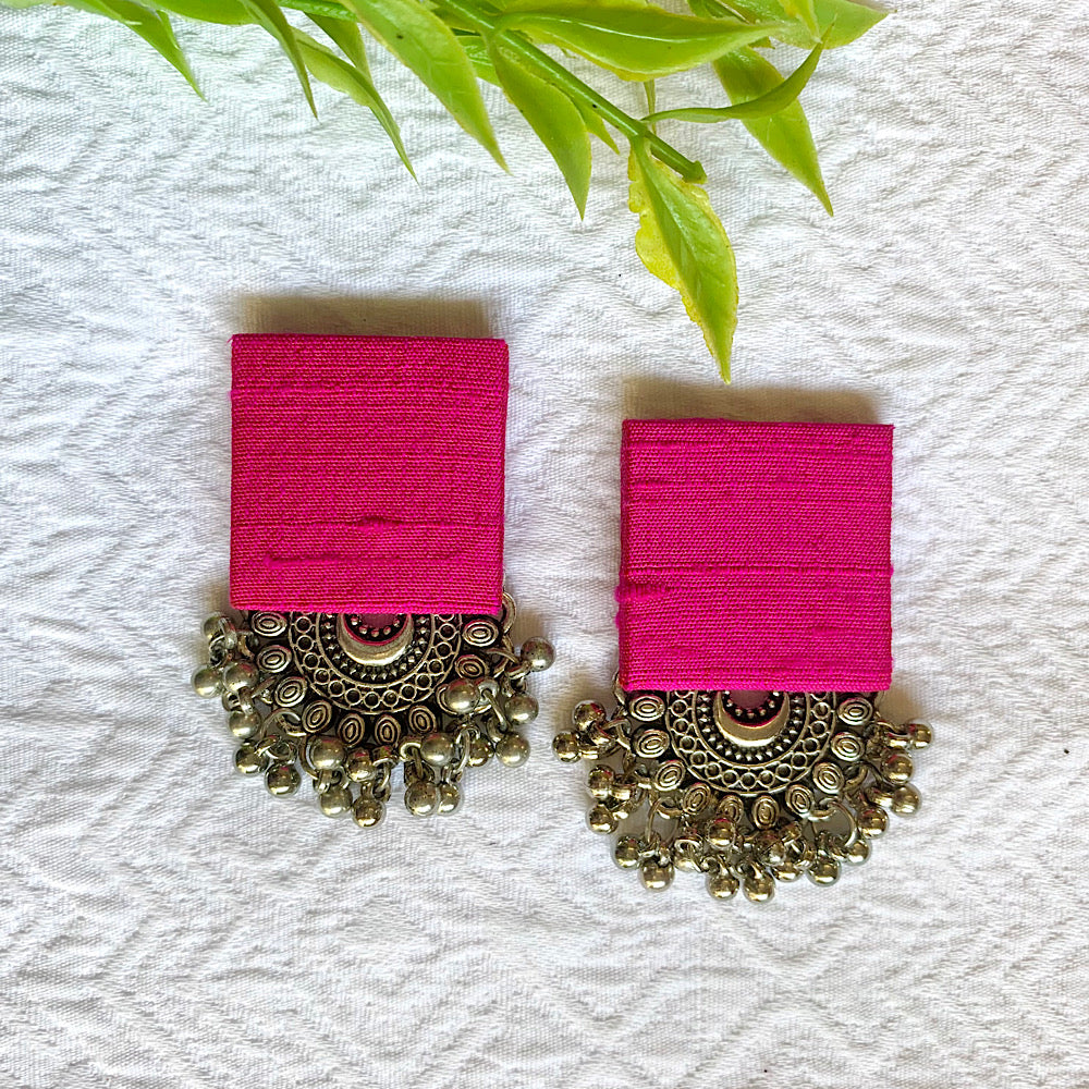 Pure Raw Silk Fusion Earrings - Fuchsia Pink
