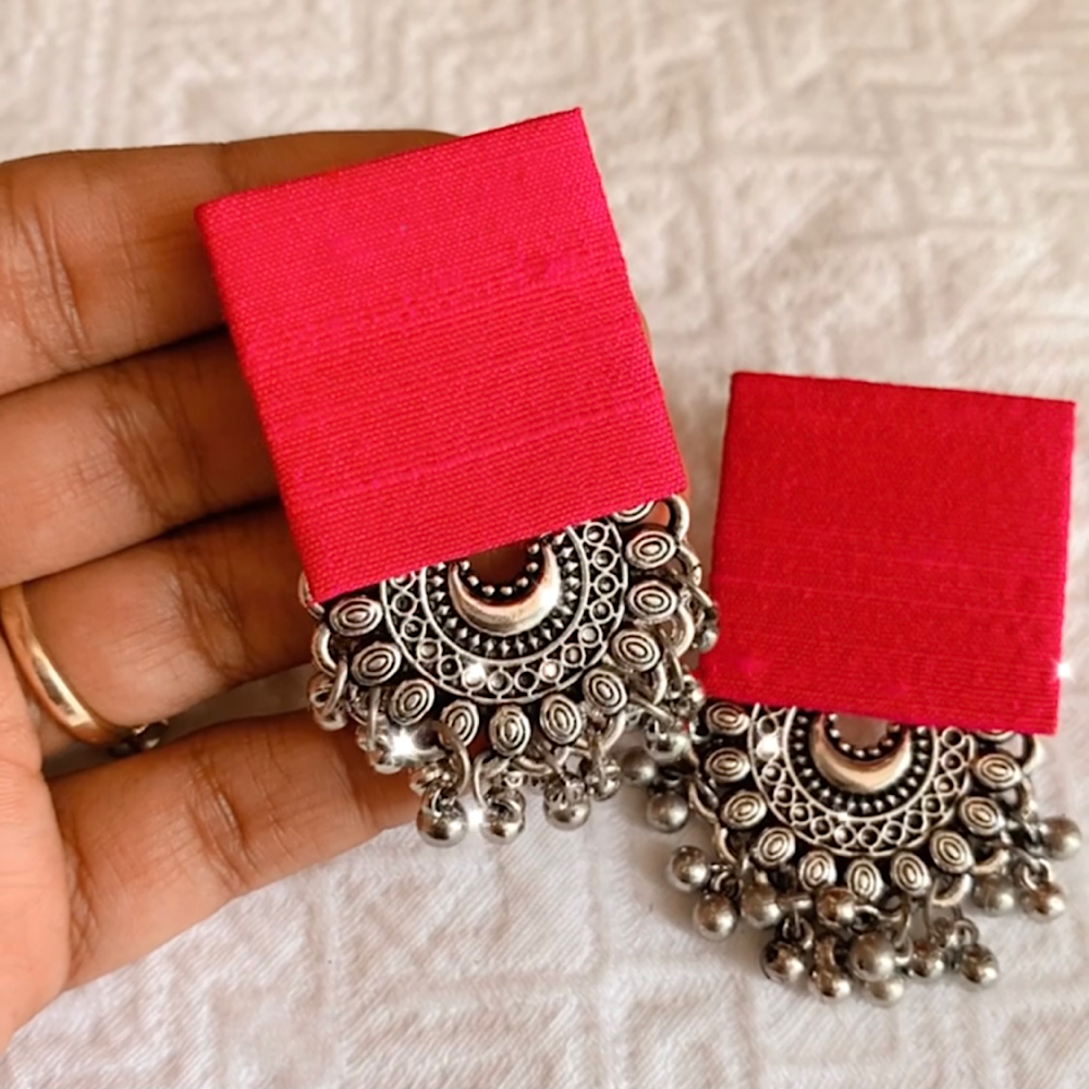 These Earrings are Handcrafted and Unique, made with Pure Raw Silk Fabric that shows its beautiful raw weaves within the fabric making it more special. They are perfect for any occasion or regular wear, can easily be paired up in contrast or can be matched up to the outfit, adding bohemian style and contemporary touch to the complete look.