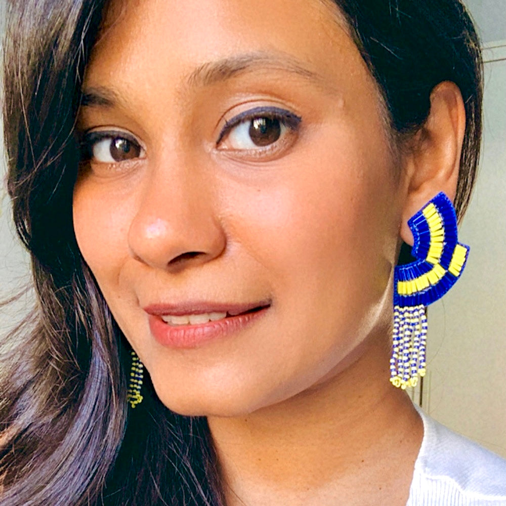 Please note: The hand embroidery done on these earrings to create this beautiful design may have minor inconsistency around. We attribute this to the beauty of hand painting which lends to the exclusivity of the product.