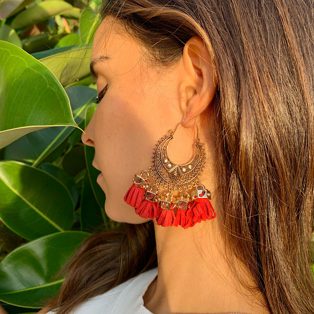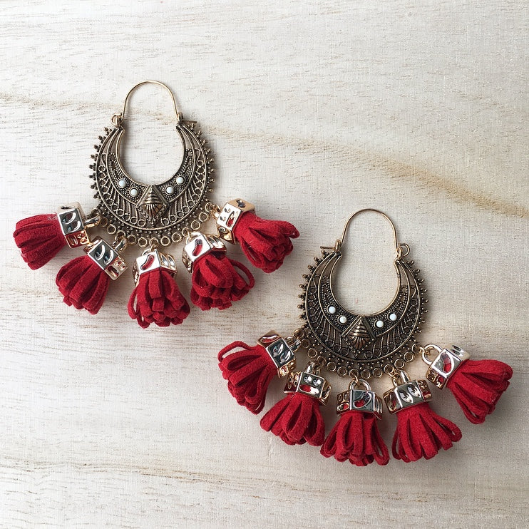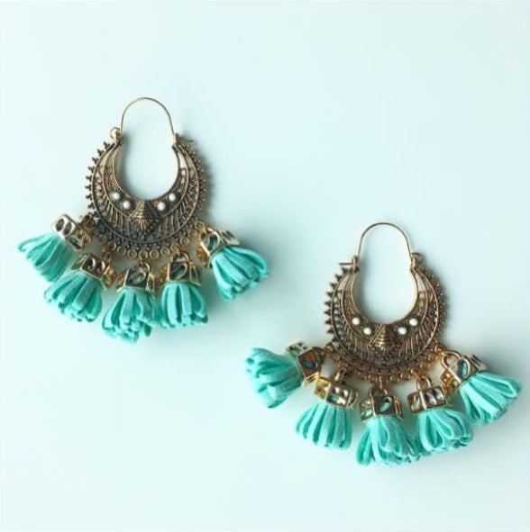 These Earrings are designed with handcrafted felt tassels to create a fusion of ancient design with modern tassels, a very unique design. They are perfect for any occasion or regular wear, can easily be paired up in contrast or can be matched up to the outfit, adding a bohemian touch to the complete look.