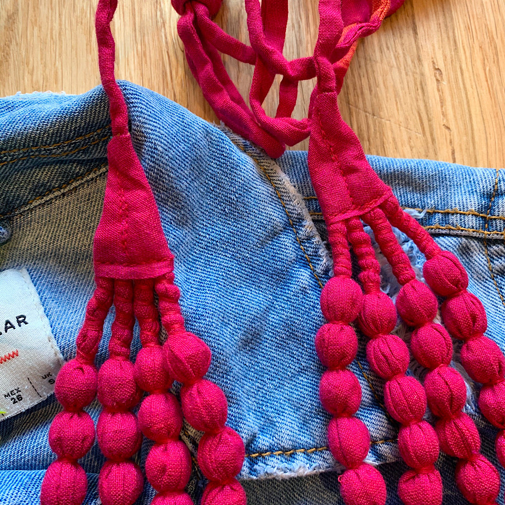 This necklace is handcrafted with excessive recycled fabric contributing to achieve economic, social, and environmental sustainability. It is a wonderfully fun piece easy to style with regular outfits while adding a unique charm to your look.