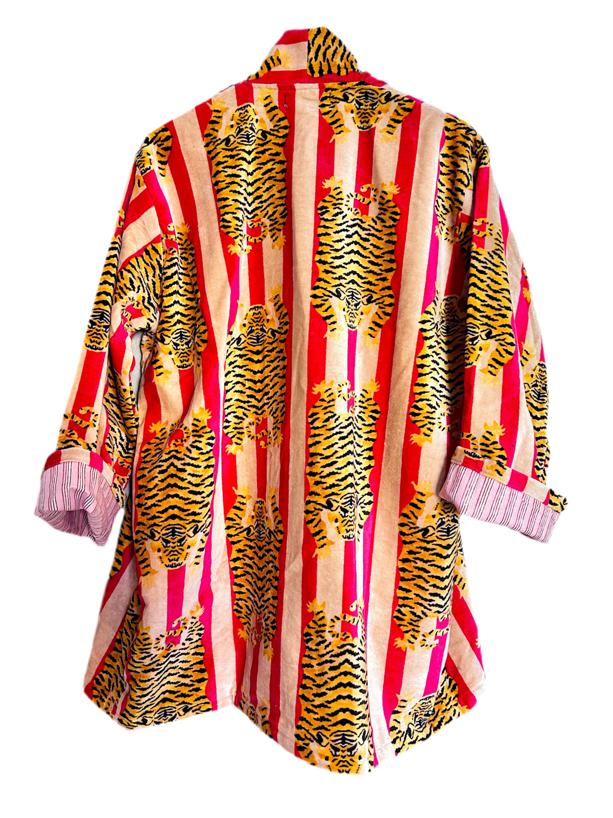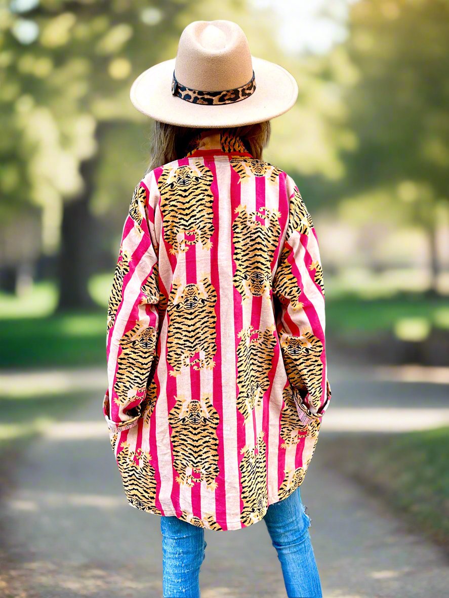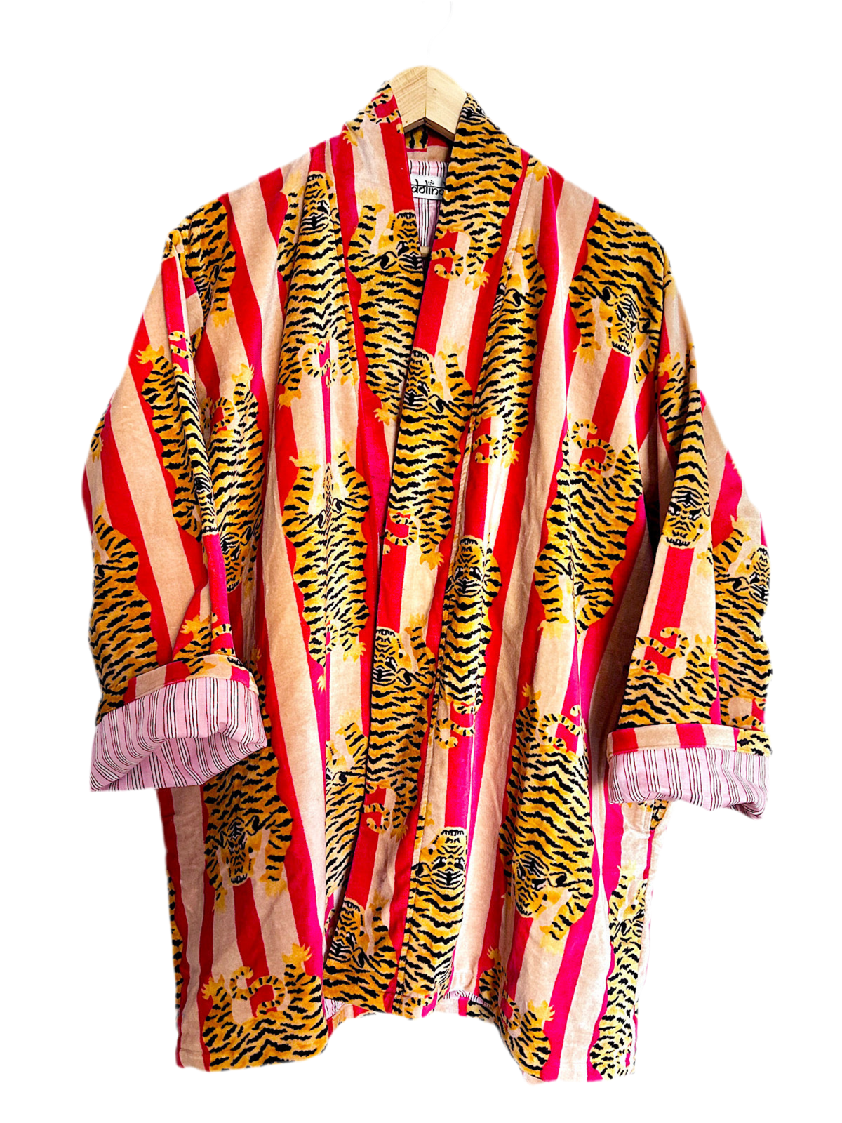 Pink and Peach Tiger Short Velvet Printed Jacket