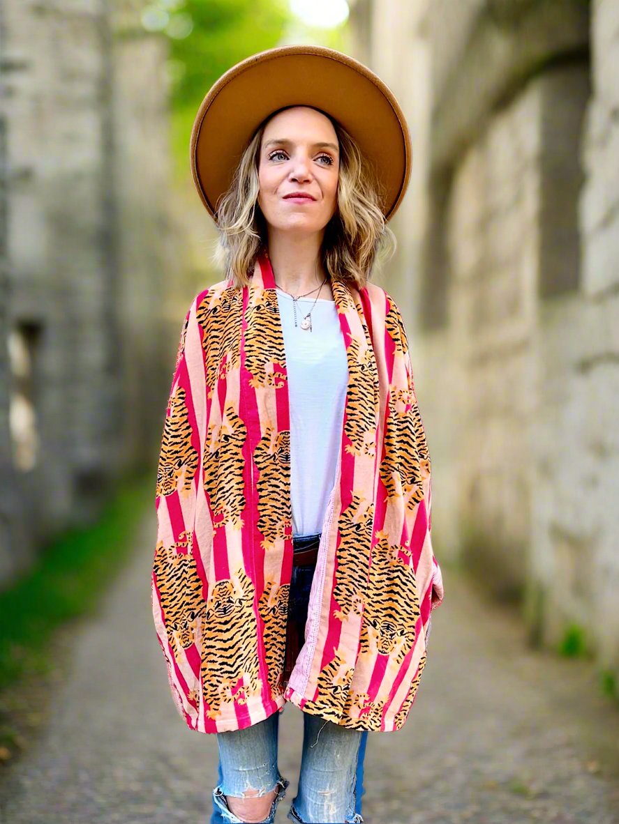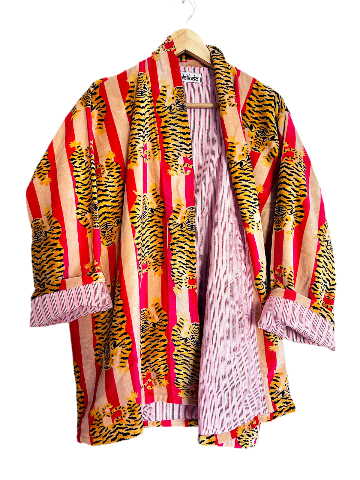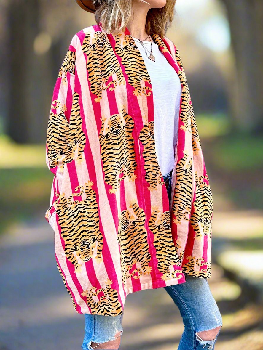 Pink and Peach Tiger Short Velvet Printed Jacket