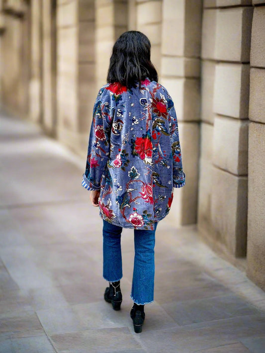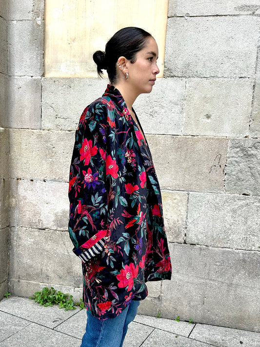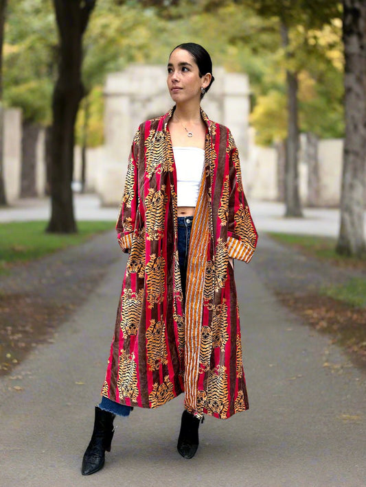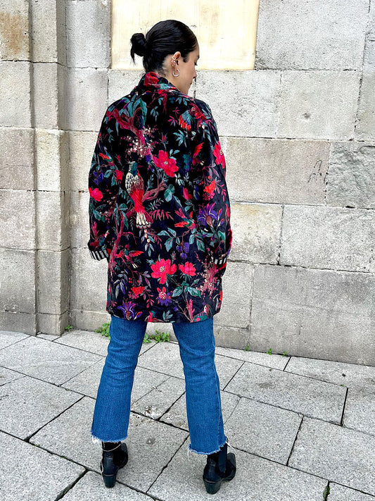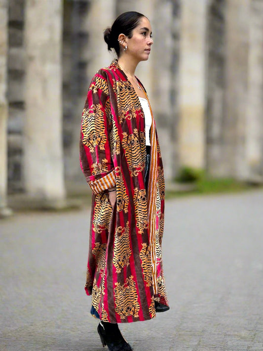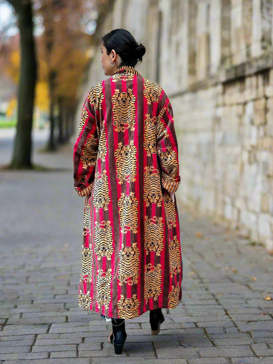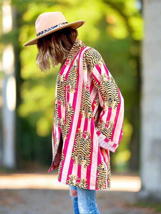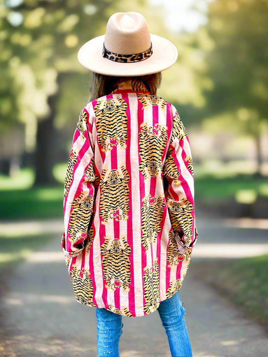 Pink and Peach Tiger Short Velvet Printed Jacket