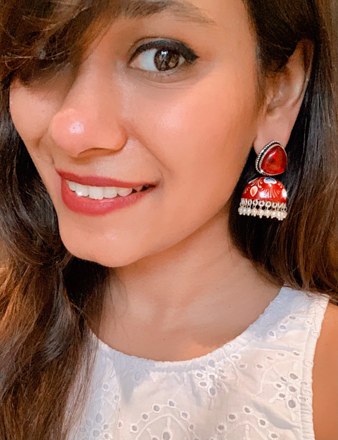 These Earrings are Hand painted and Unique. They are perfect for any occasion or regular wear, can easily be paired up in contrast or can be matched up to the outfit, adding uniqueness and simplicity to the complete look.