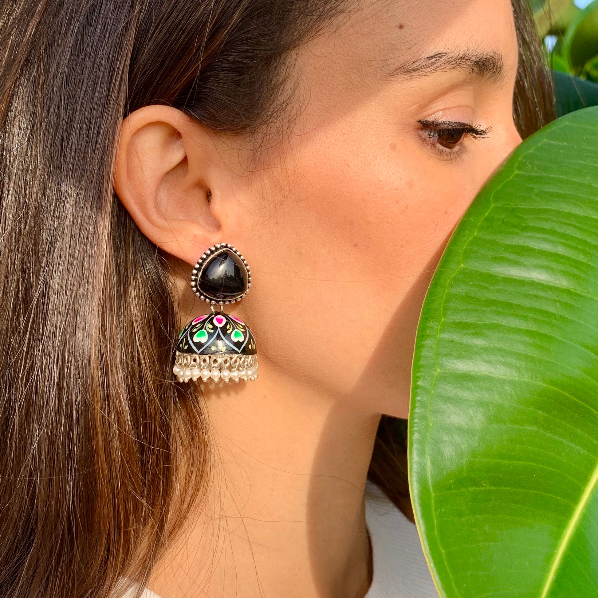 Please note: The hand painting done on these earrings to create this beautiful design may have minor inconsistency around. We attribute this to the beauty of hand painting which lends to the exclusivity of the product.