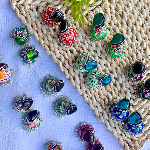 Please note: The hand painting done on these earrings to create this beautiful design may have minor inconsistency around. We attribute this to the beauty of hand painting which lends to the exclusivity of the product.