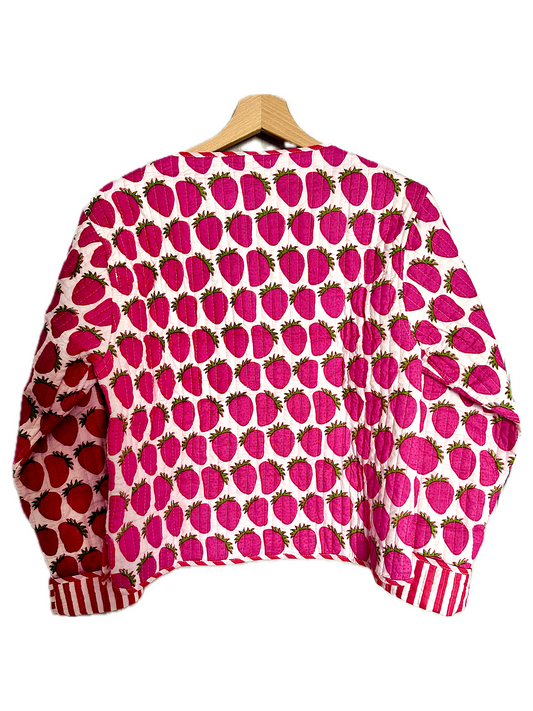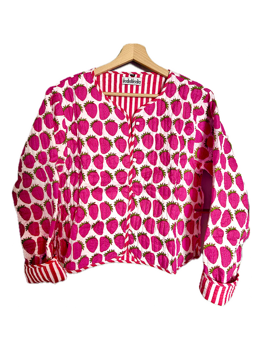 Pink Cute Strawberry Printed Cotton Short Reversible Jacket