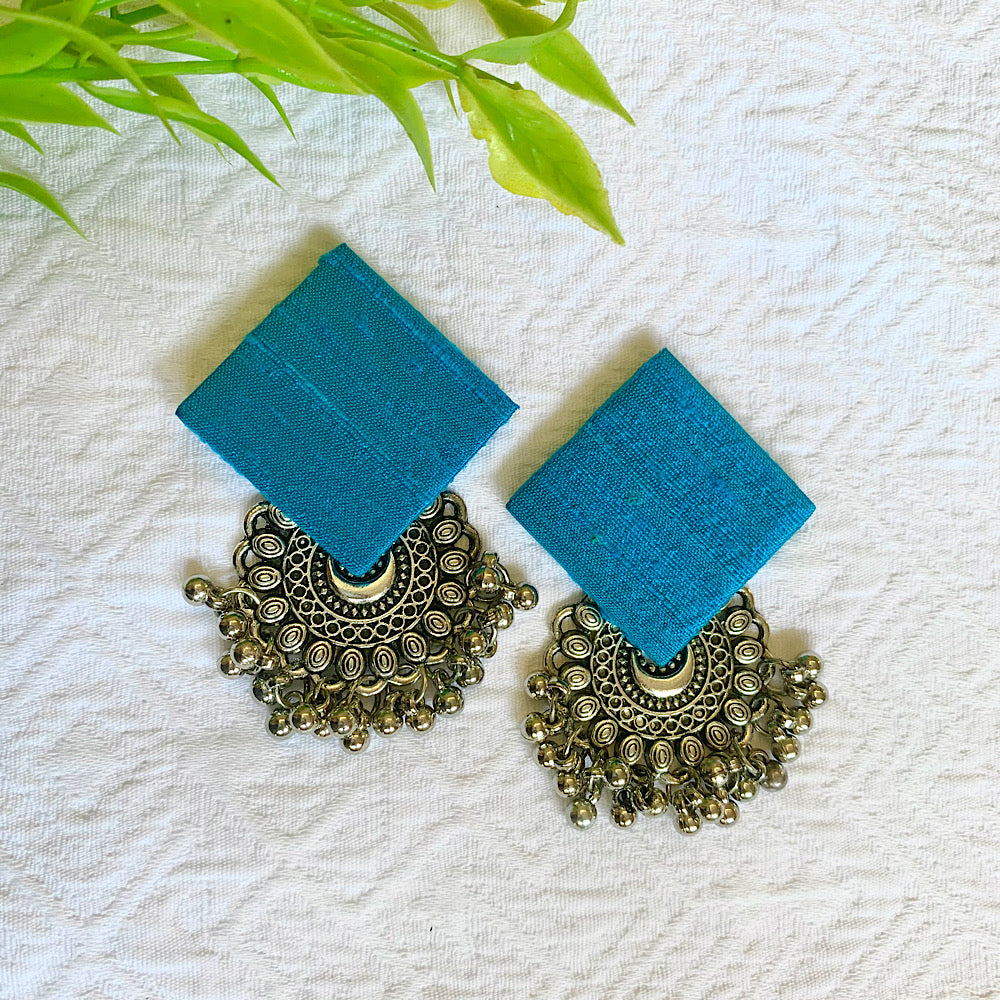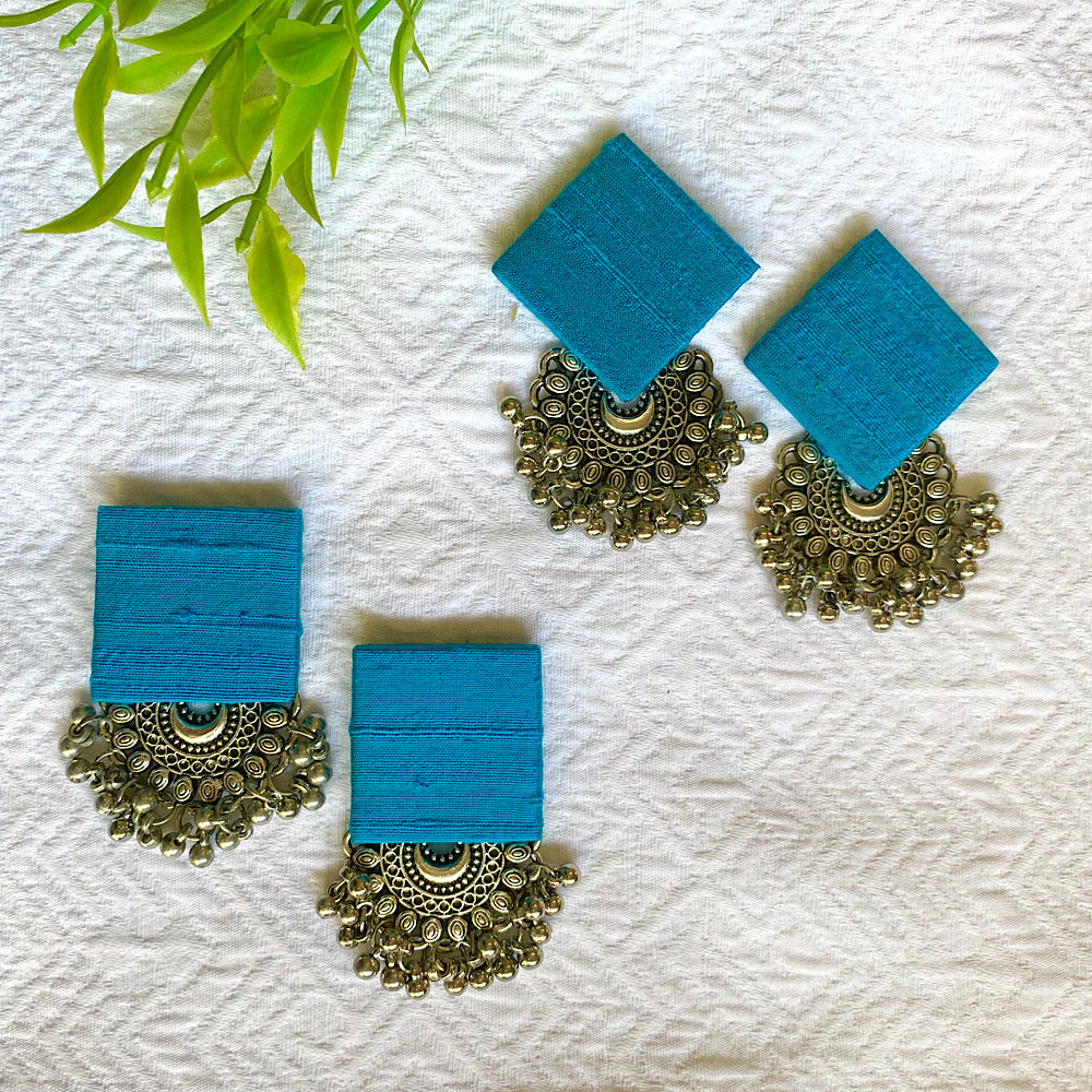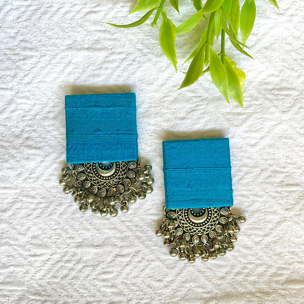 Pure Raw Silk Fusion Earrings - Peacock Blue