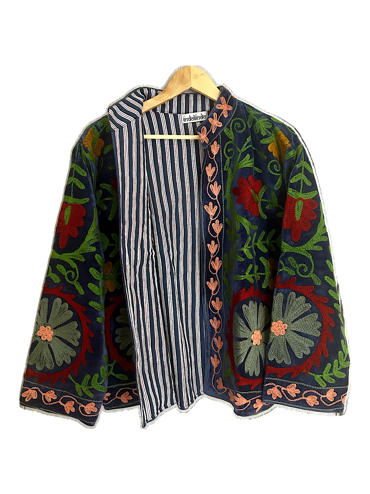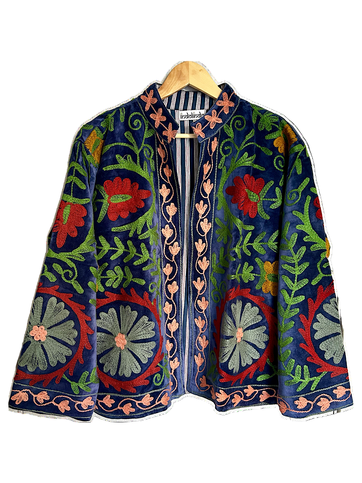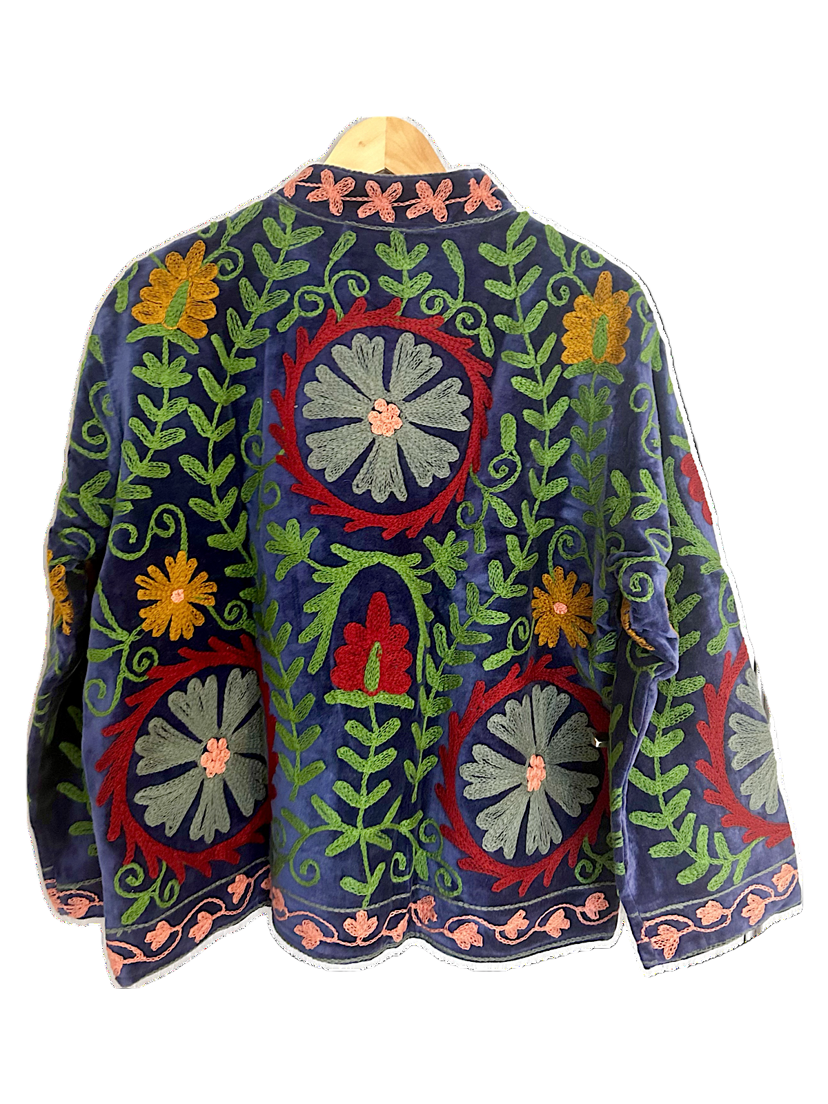Navy Blue with Colourful Suzani Velvet Embroidered Jacket