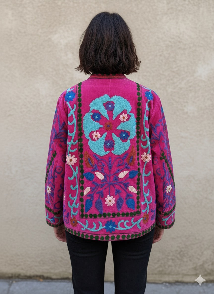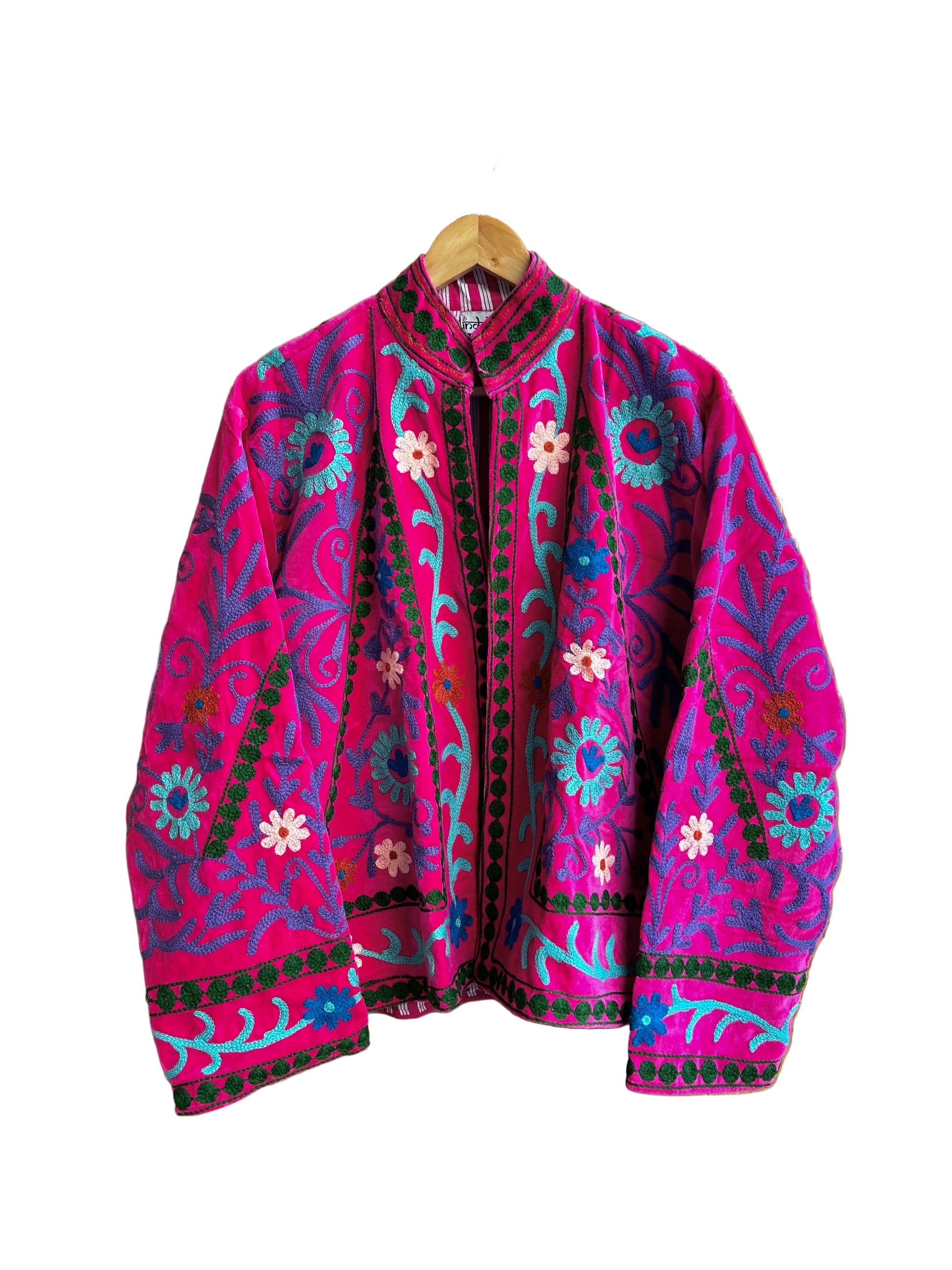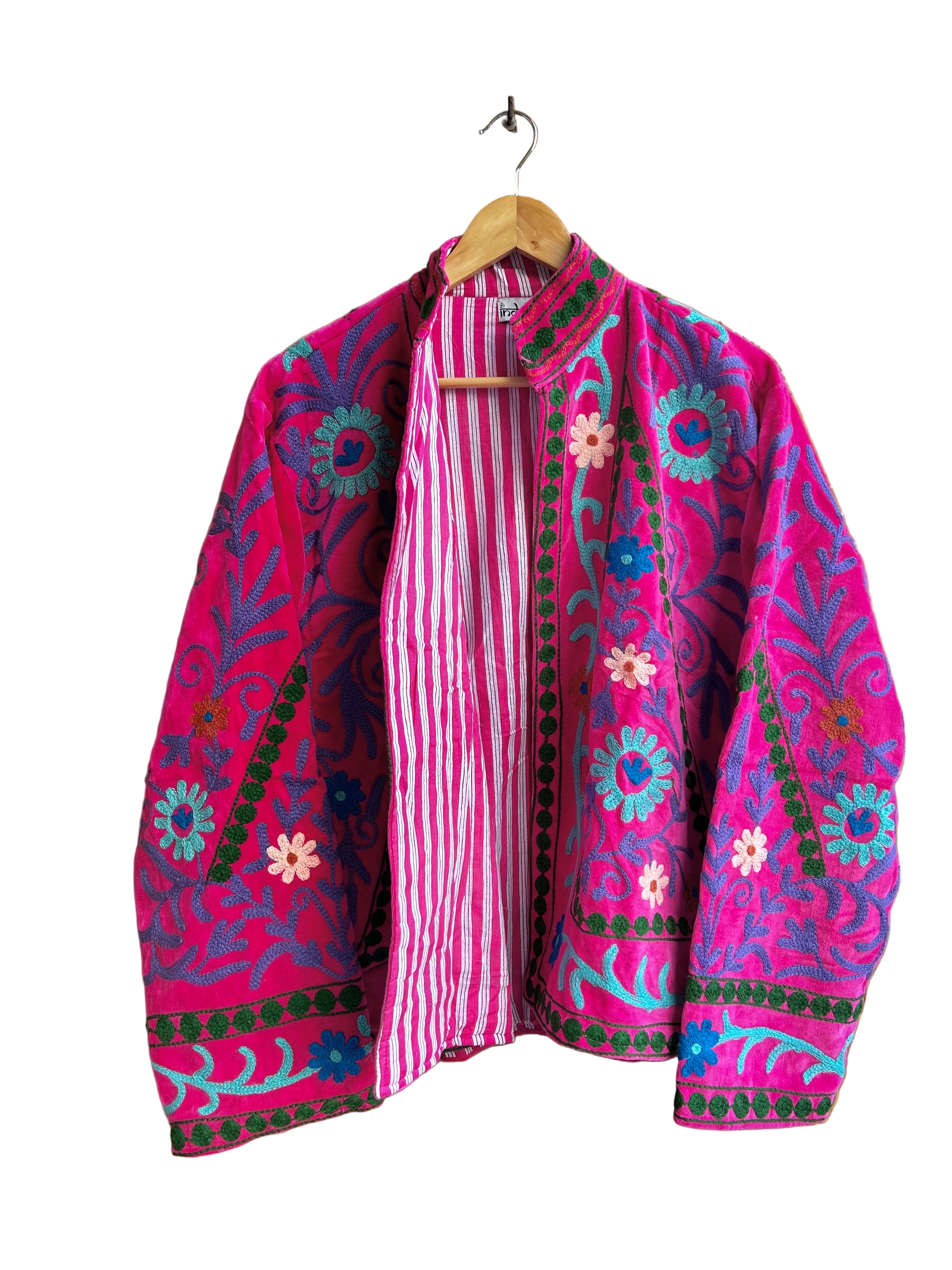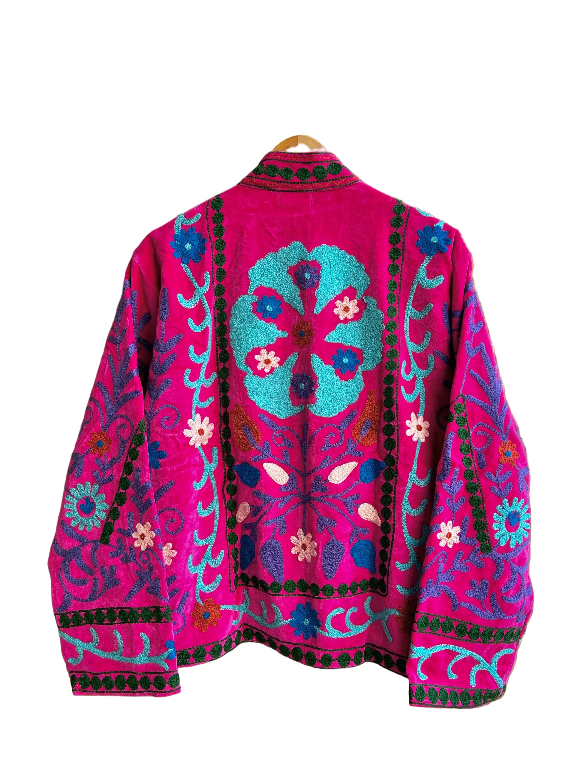 Pink with Colours Suzani Velvet Embroidered Jacket