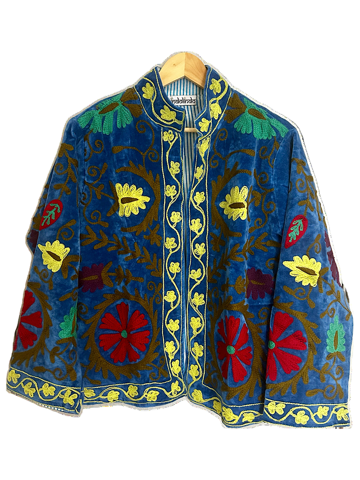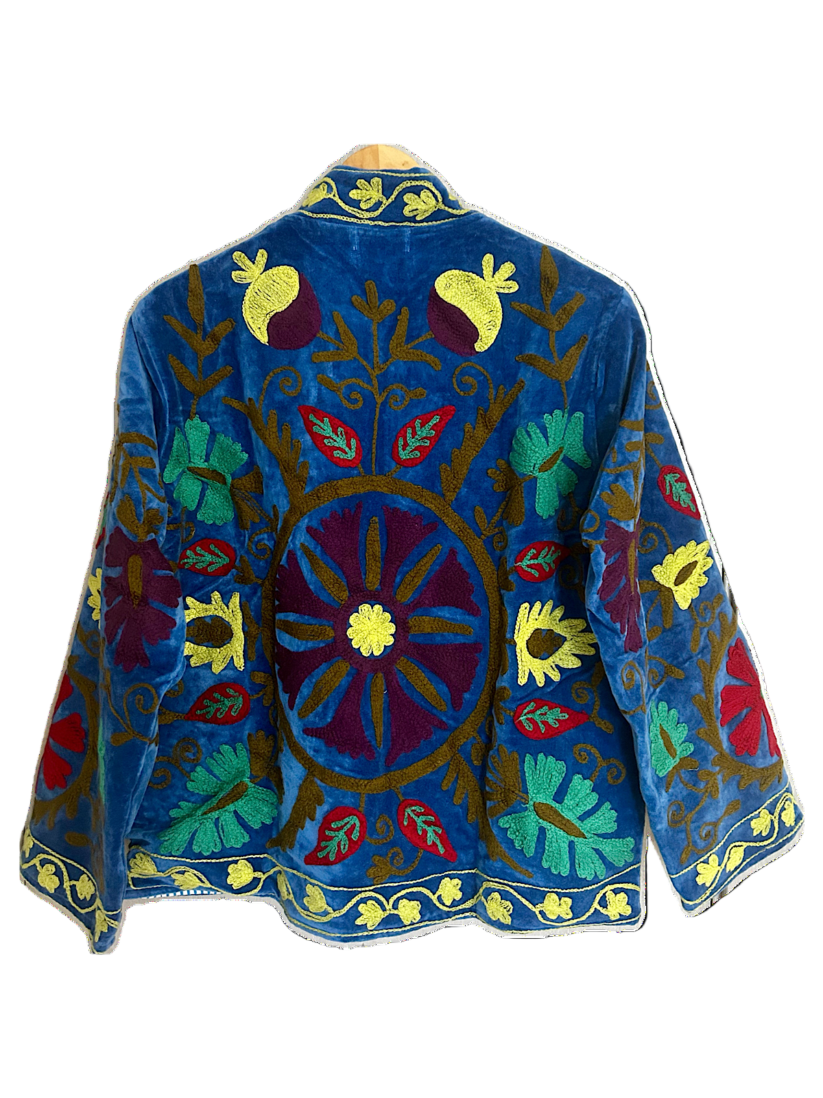 Blue with Colourful Suzani Velvet Embroidered Jacket