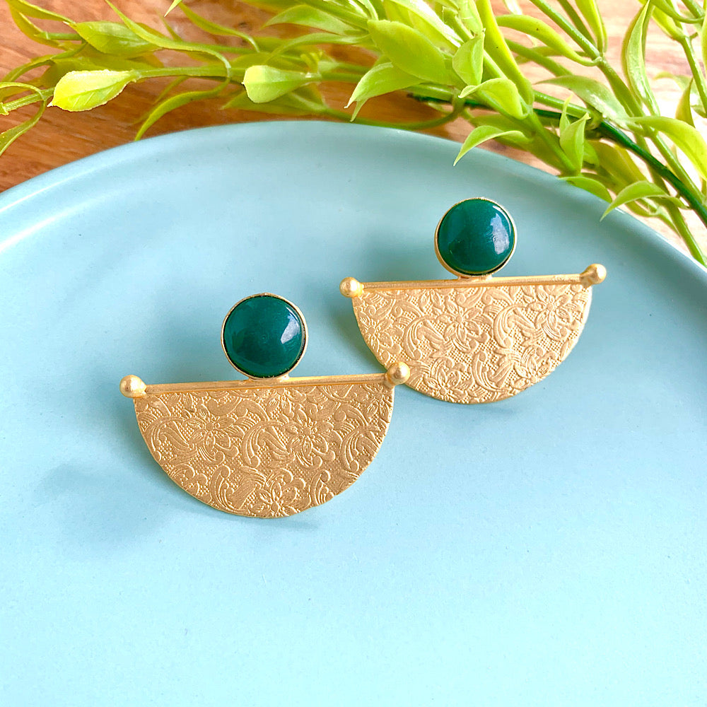 These Earrings are a fusion of ethnic design and natural stones, forming a very unique interesting design. They are perfect for any occasion or regular wear, can easily be paired up in contrast or can be matched up to the outfit, adding a bohemian touch to the complete look.